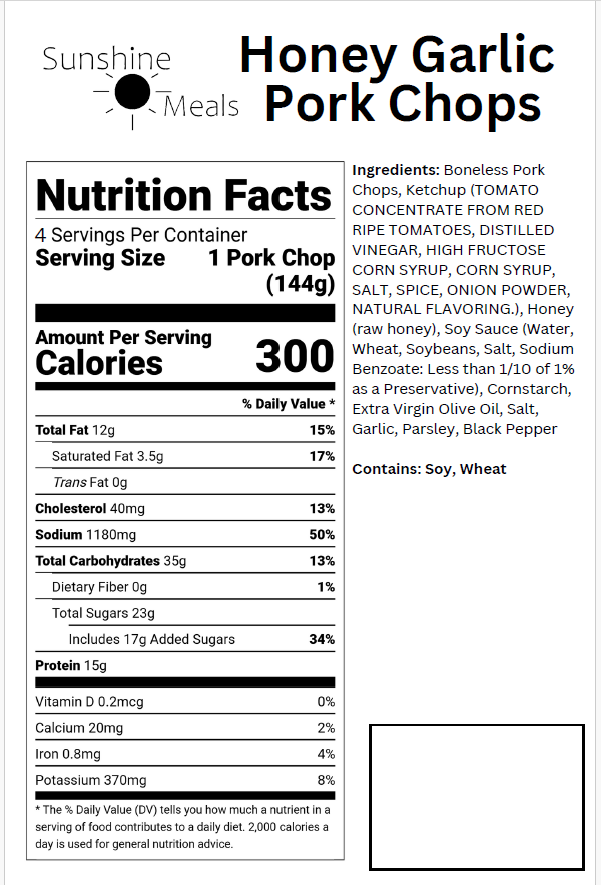 Sunshine meals provides pre- packaged, ready to cook, frozen