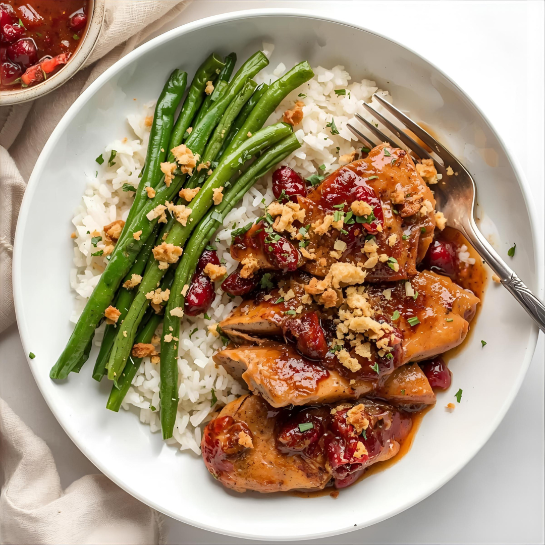 All the cozy flavors of the season in one dish! Tender chicken simmered in a rich cranberry sauce with hints of spices and tangy sweetness. It is a Thanksgiving comfort in every bite!