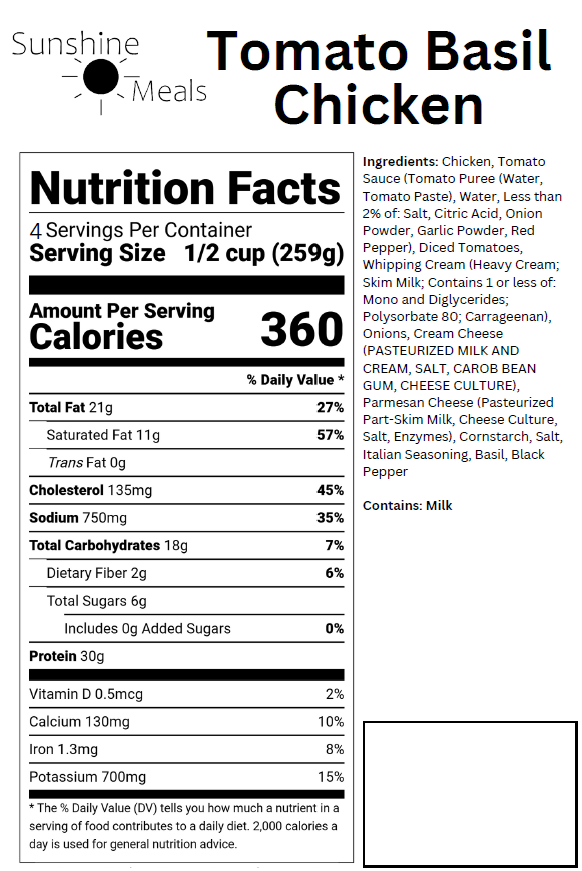 Sunshine meals provides pre- packaged, ready to cook, frozen