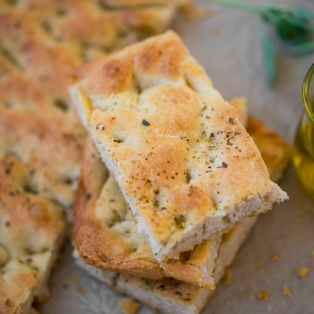 Brought to you By All About The Dough - This Focaccia bread is soft, airy, and golden and is the perfect side to any of our meals.